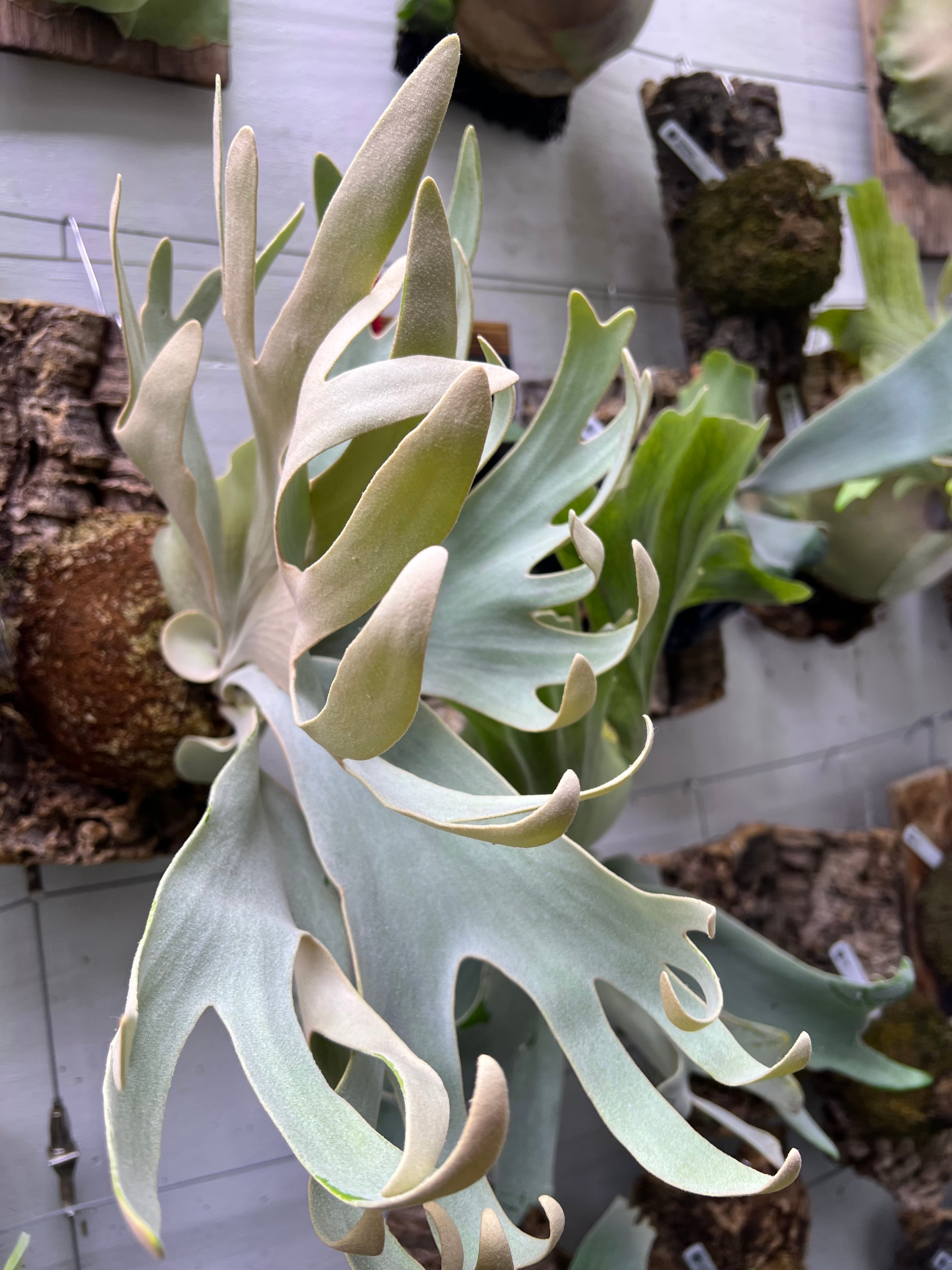 大きくなるまでは太いホワイトギズモのような胞子はですが、あるときから、急に分岐が始まり内巻きする、うちの店の看板ビカクシダの一株です。他にはない最高にかっこいいビカクシダです。